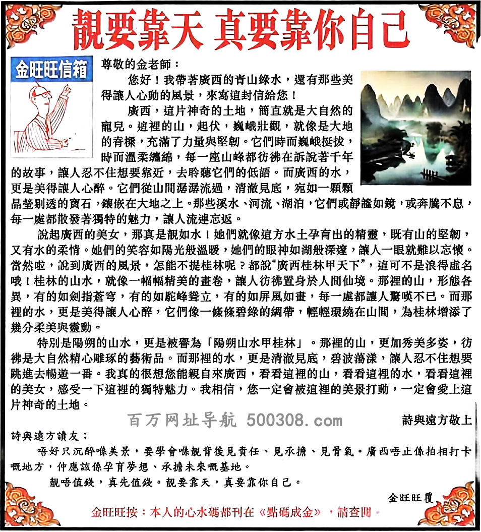 109期:金旺旺信箱彩民推荐→→《靚要靠天 真要靠你自己》